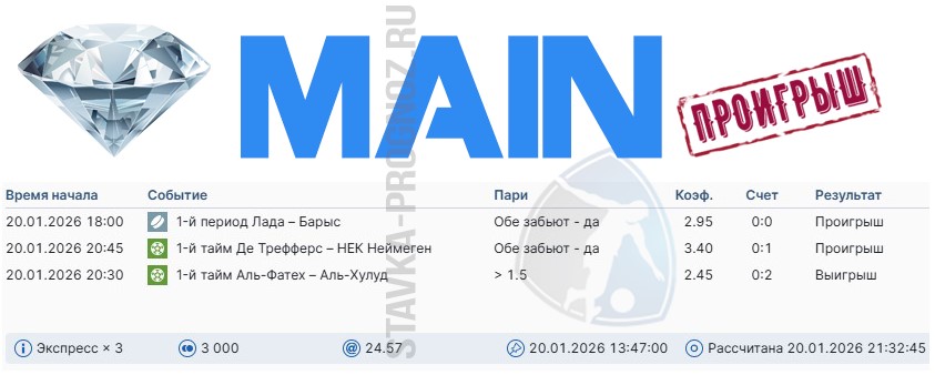 Также скажем пару слов про бриллиантовый прогноз - это прогноз на спорт с КФ от Х20 и выше. Он полюбился нашим топовым клиентам за результативность. Посмотрите статистику 2025 года.