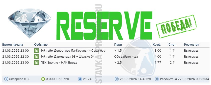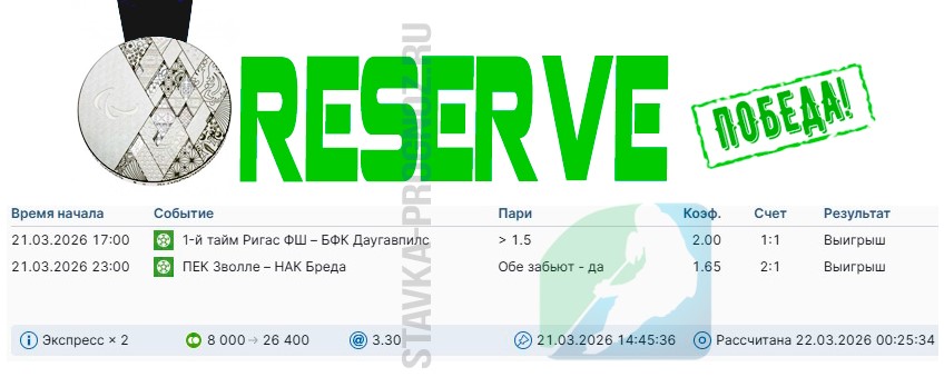 Победа reserve. Всего два события в экспрессе за КФ Х12+