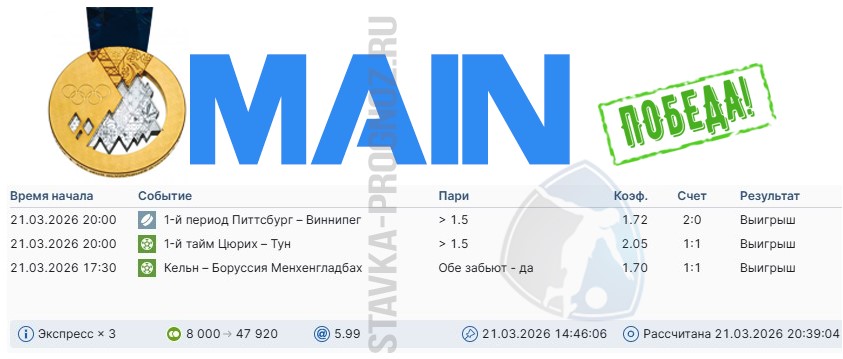 Сегодня играем все основные прогнозы + воскресный экспресс СОТКА2Х.