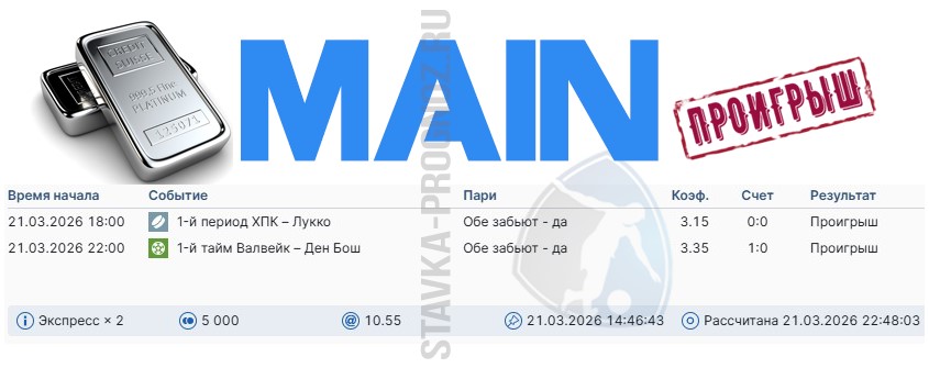 Серебряный прогнозMAIN-карточка с КФ Х3,00-Х3,99