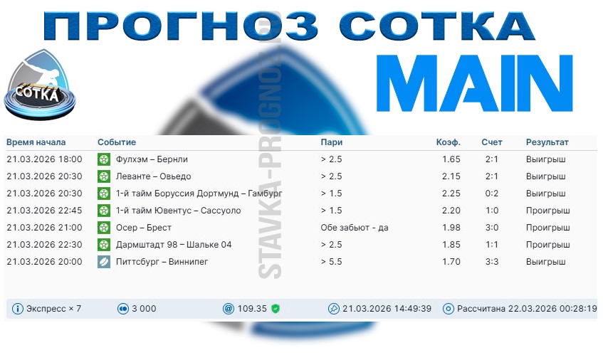 Ближайший прогноз СОТКА играем 21 марта.