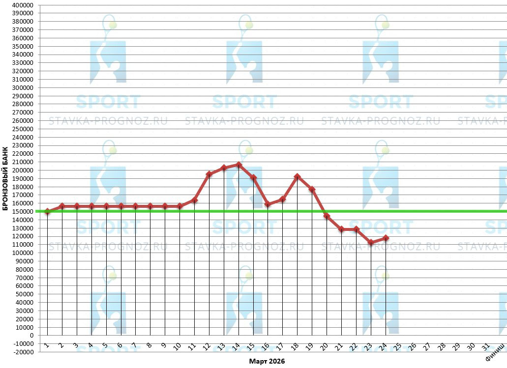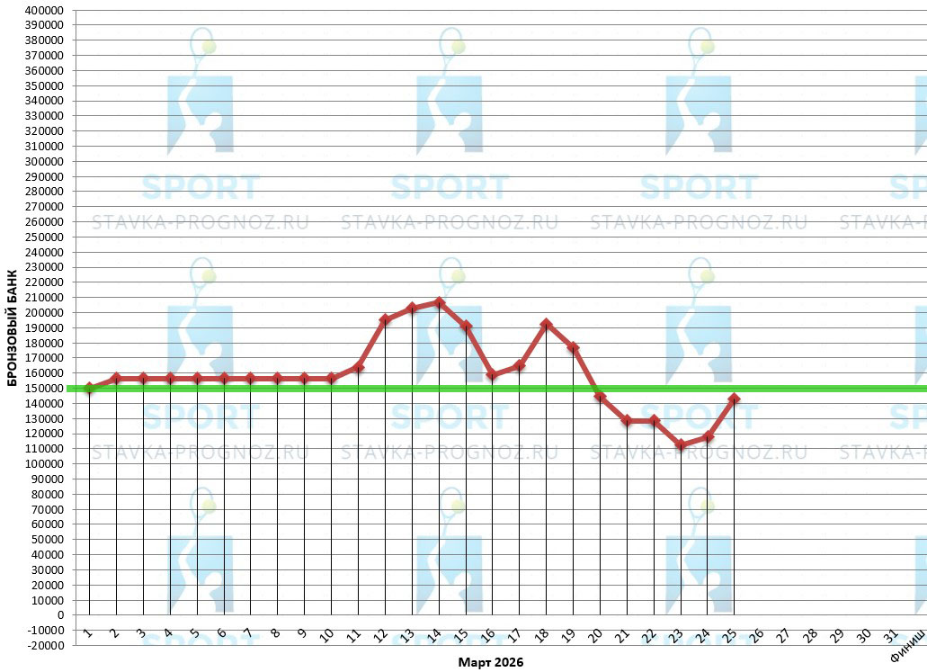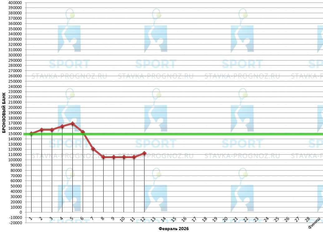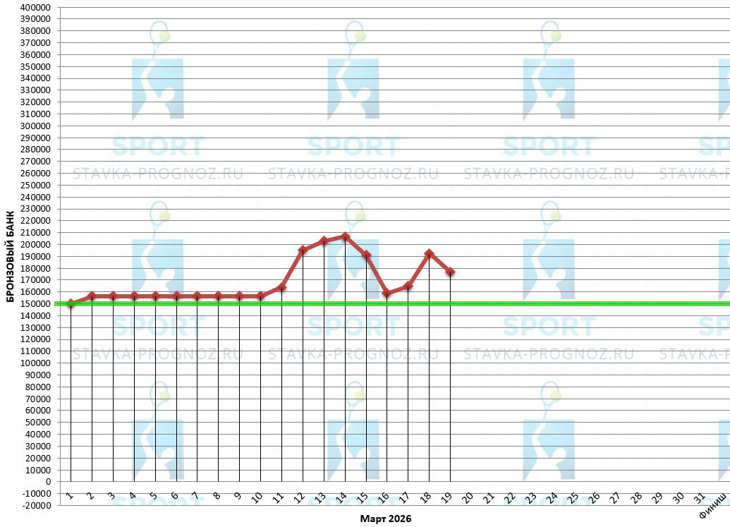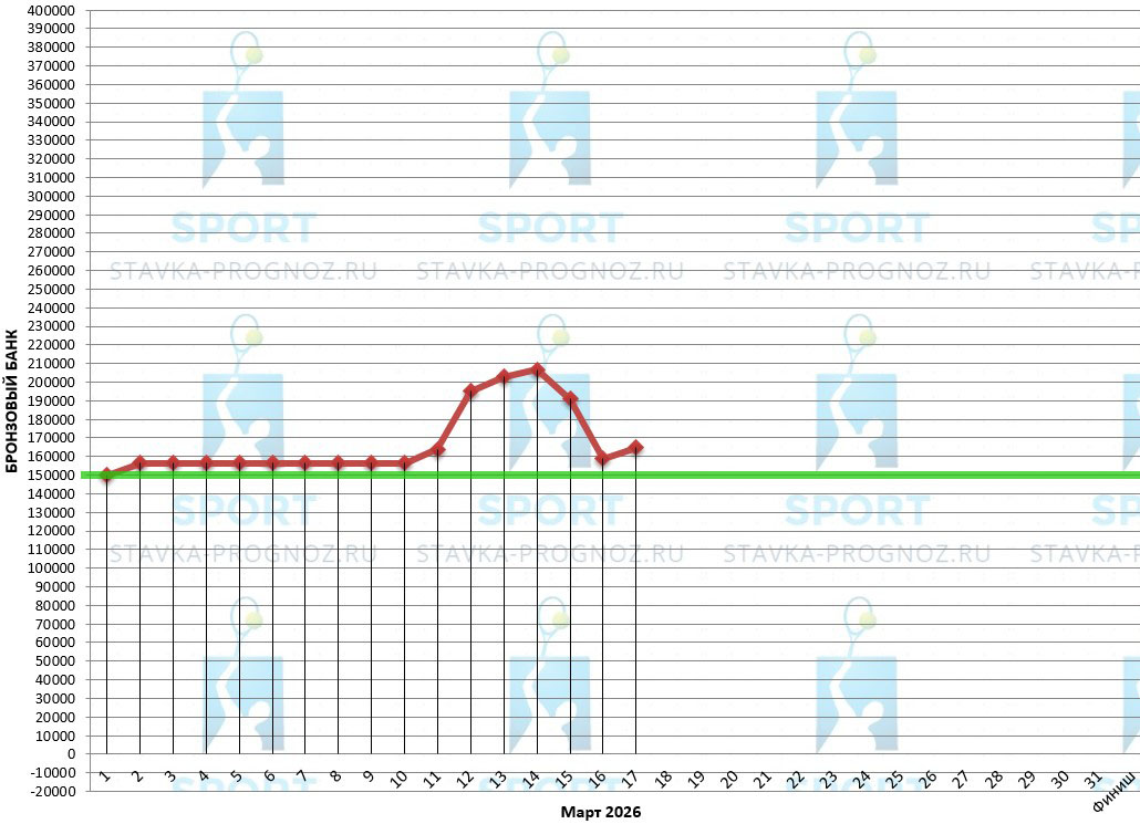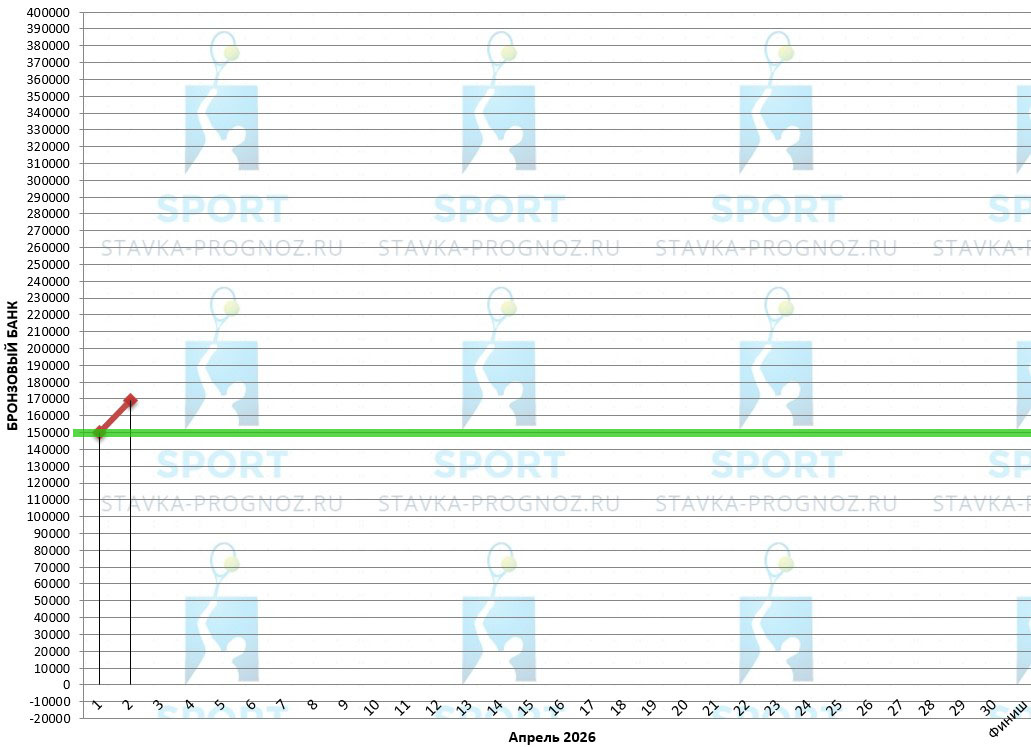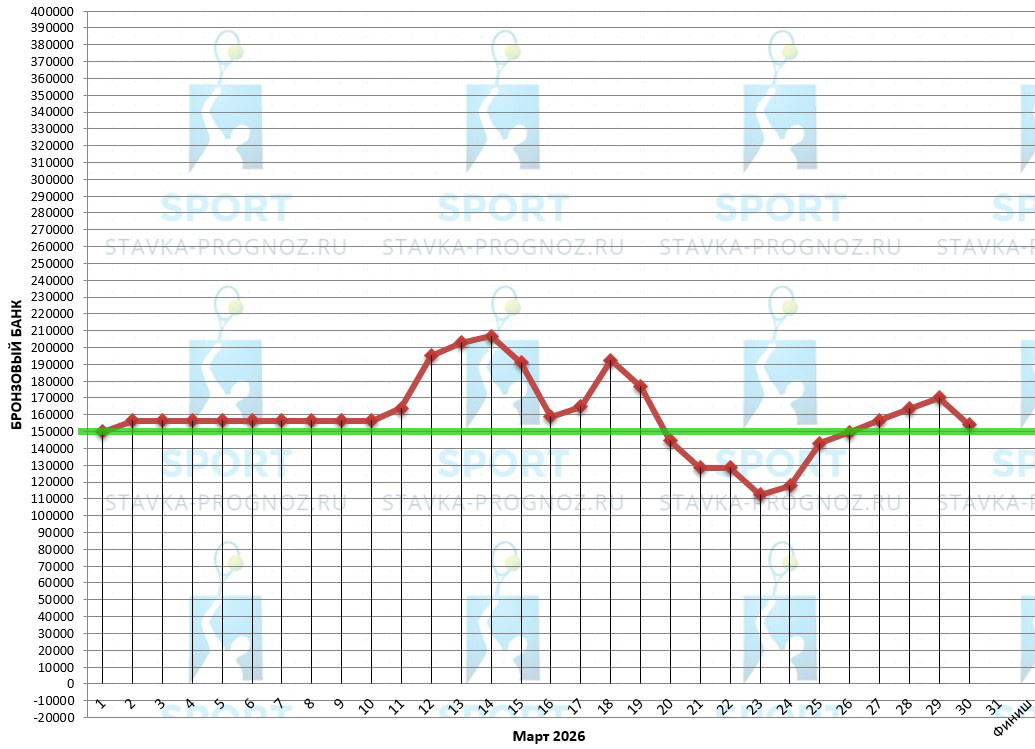 В бронзовом прогнозе после каждого аута идёт удвоение рабочей ставки. Далее - возврат на рабочую ставку при любом исходе.