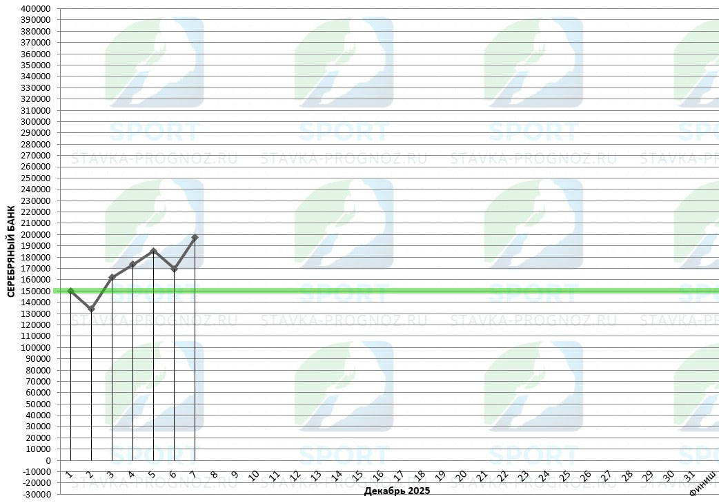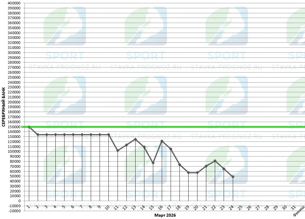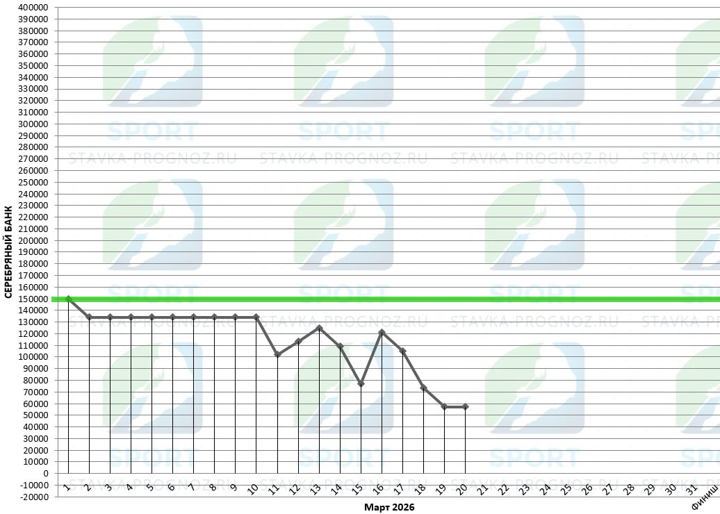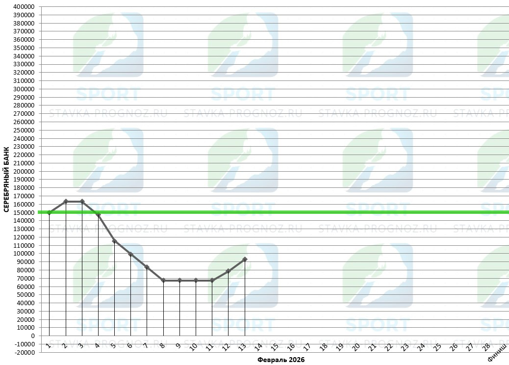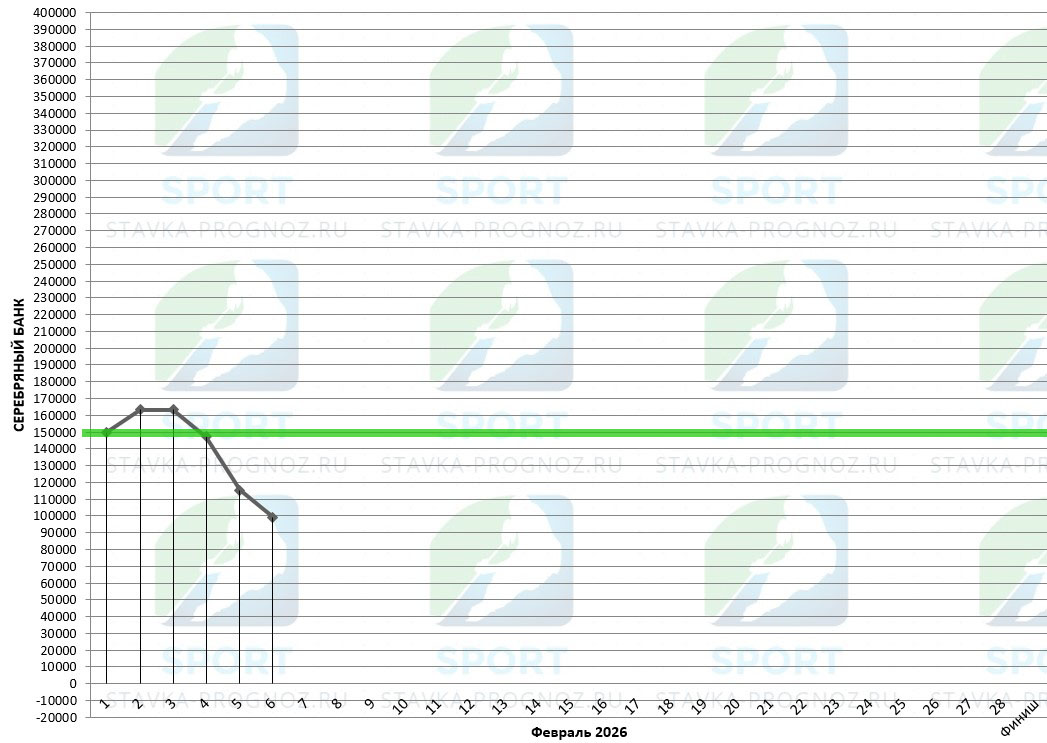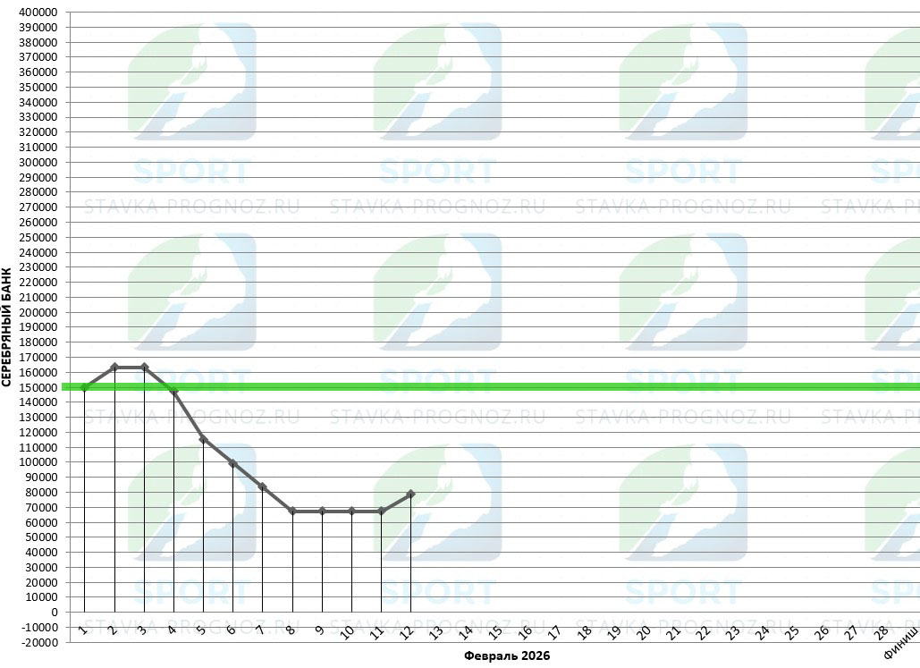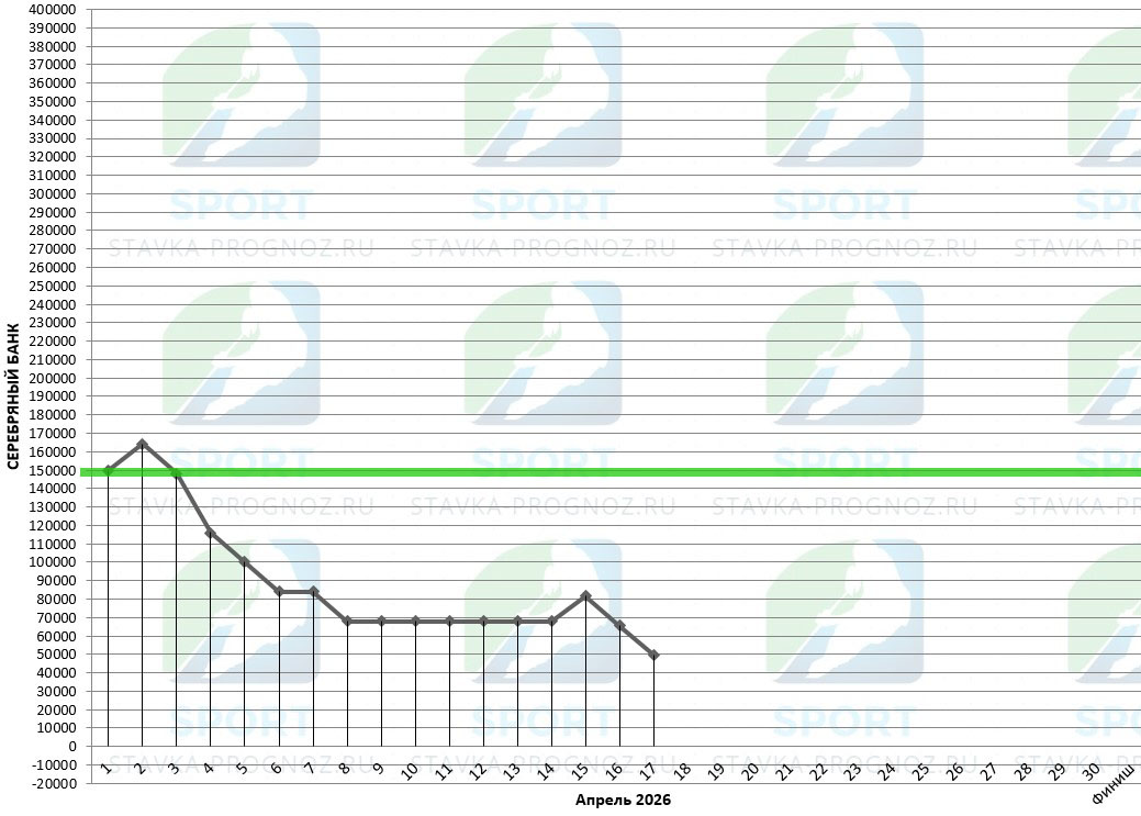 В серебряном прогнозе после каждого аута идёт удвоение рабочей ставки. Далее - возврат на рабочую ставку при любом исходе.