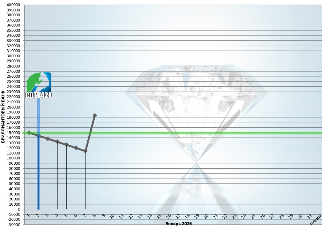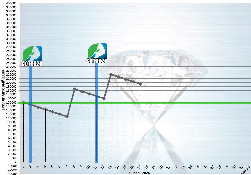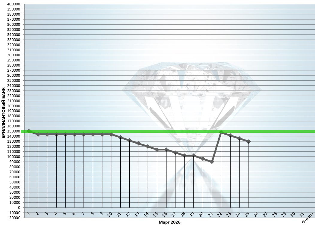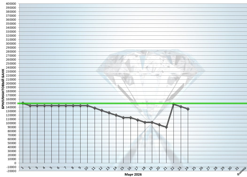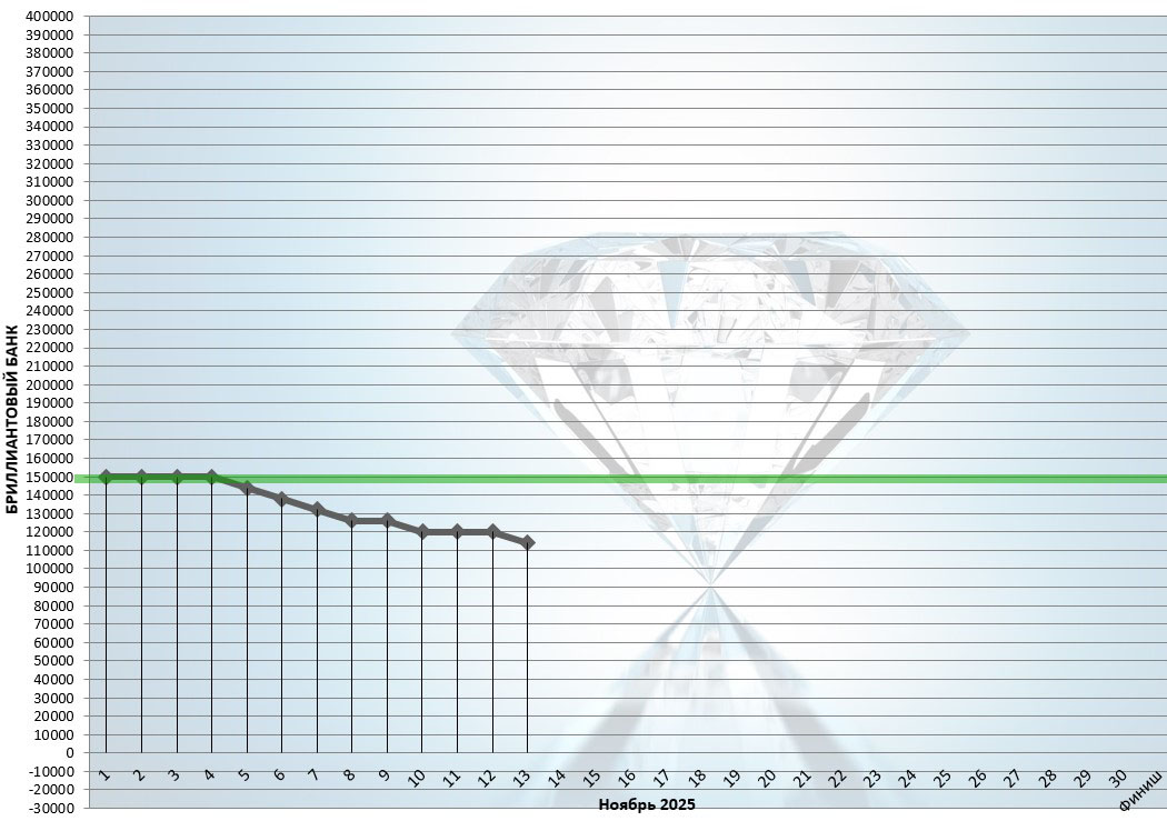 В бриллиантовом прогнозе игра идёт весь месяц на рабочей ставке., без повышений после аута. Высокий игровой КФ позволяет вести такую игру.