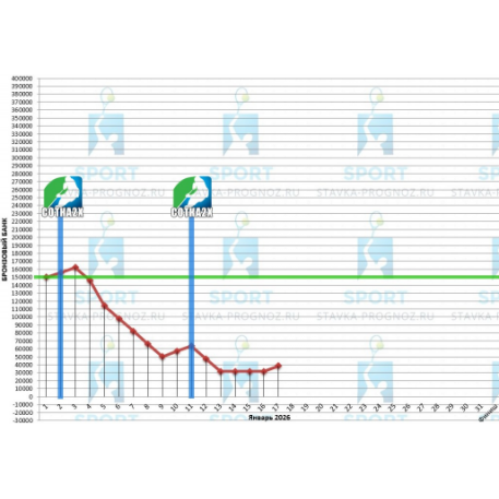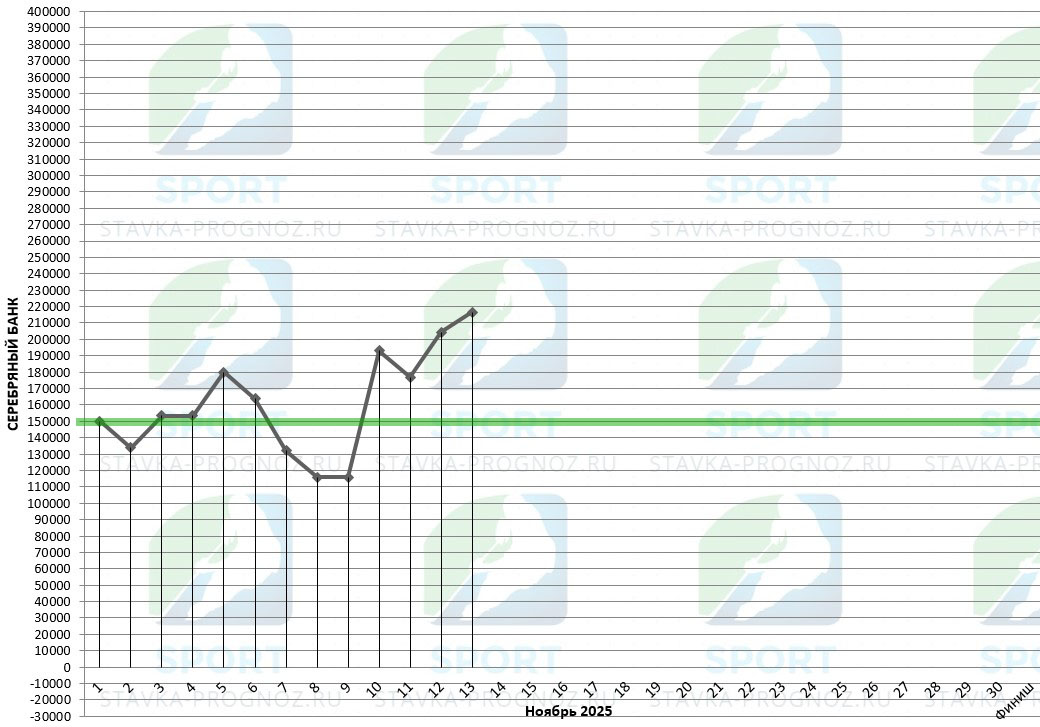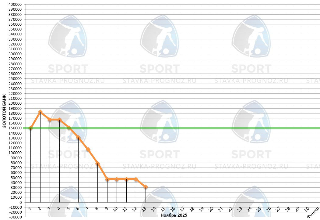 В платиновом прогнозе игра идёт весь месяц на рабочей ставке., без повышений после аута. Высокий игровой КФ позволяет вести такую игру.
