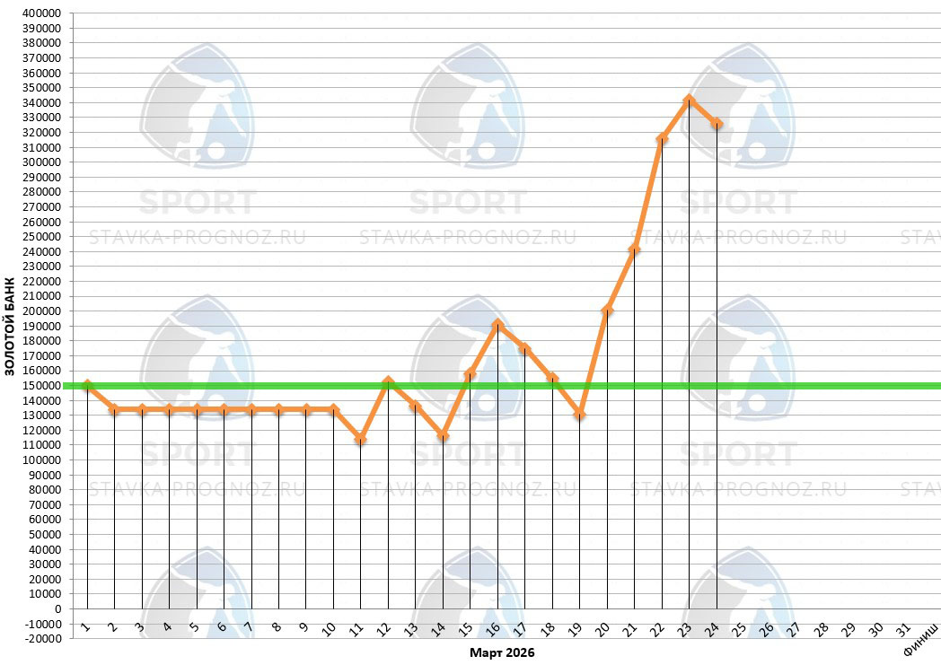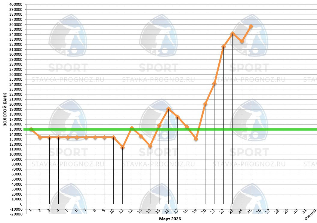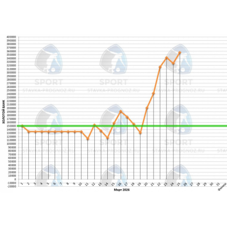 Золотой прогноз идёт на добор банка - первый заход. На него сегодня будет действовать предложение (см. ниже). От пятничной линии ждём только победы. Присоединяйтесь!