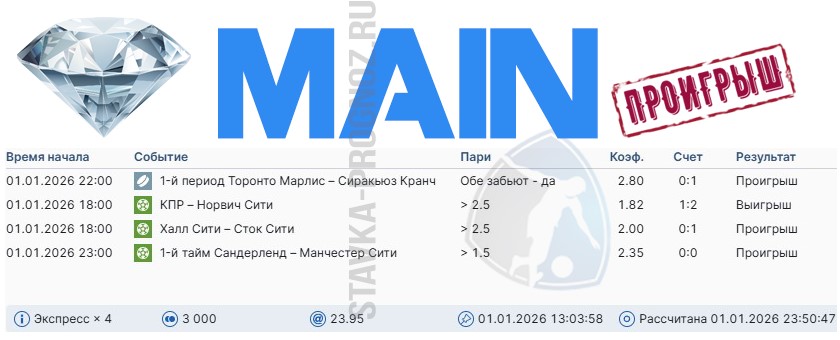 Берём первую победу в Новом Году. Два события в экспрессе за КФ под Х11.