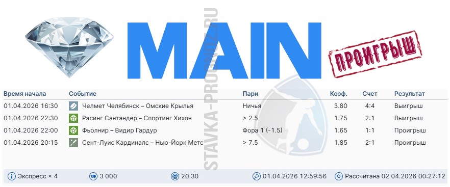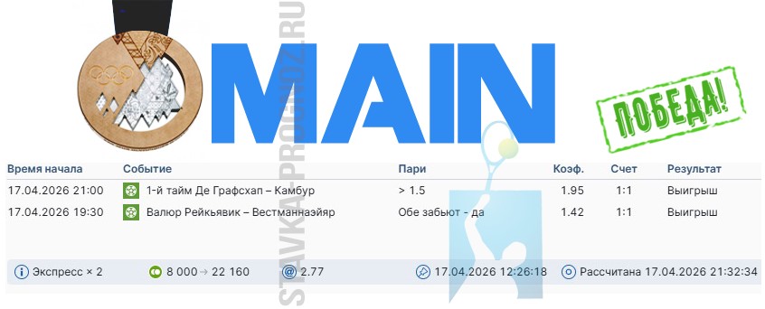 спорт в апреле от сервиса ставка-прогноз ру продолжают свою работу. Второй