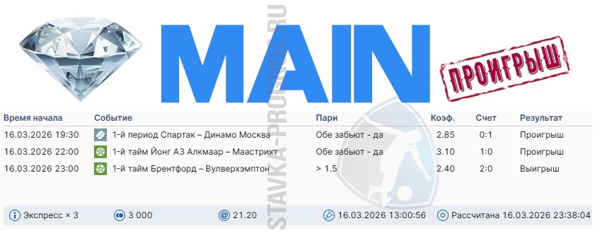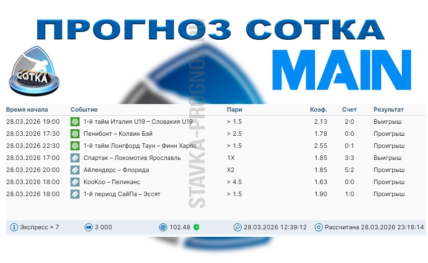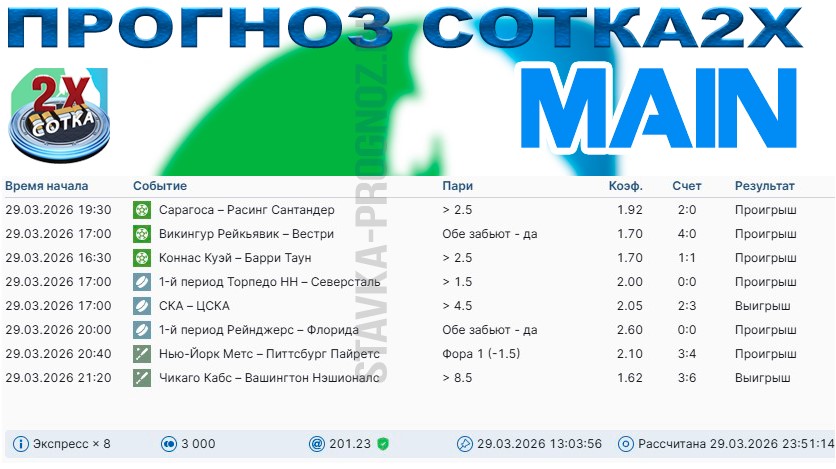 Сегодня играем все основные прогнозы + воскресный экспресс СОТКА2Х.