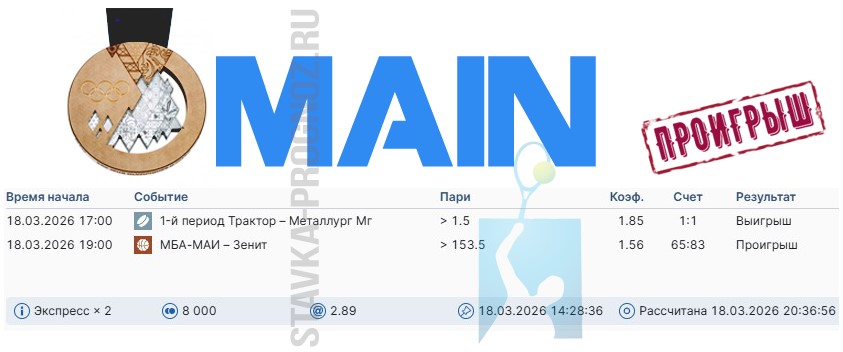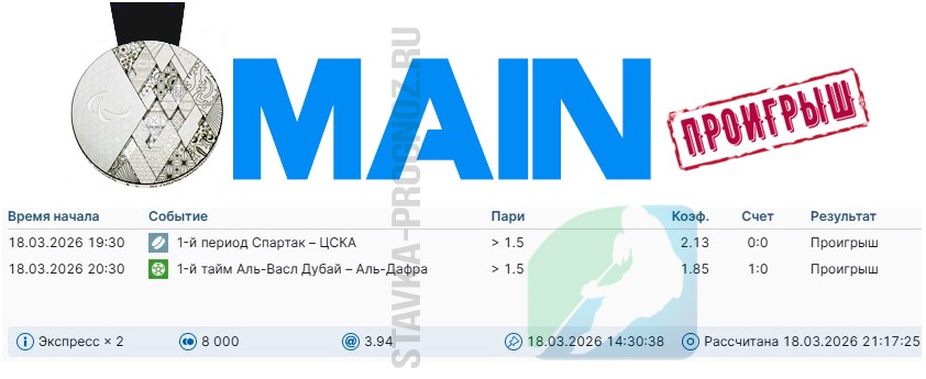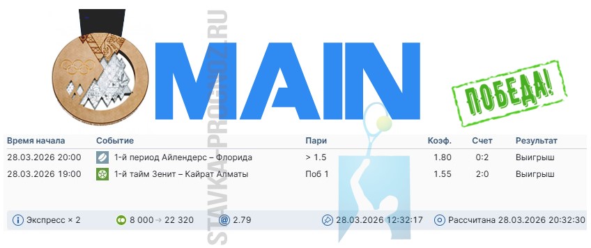 Бронзовый прогнозMAIN-карточка с КФ Х2,00-Х2,99