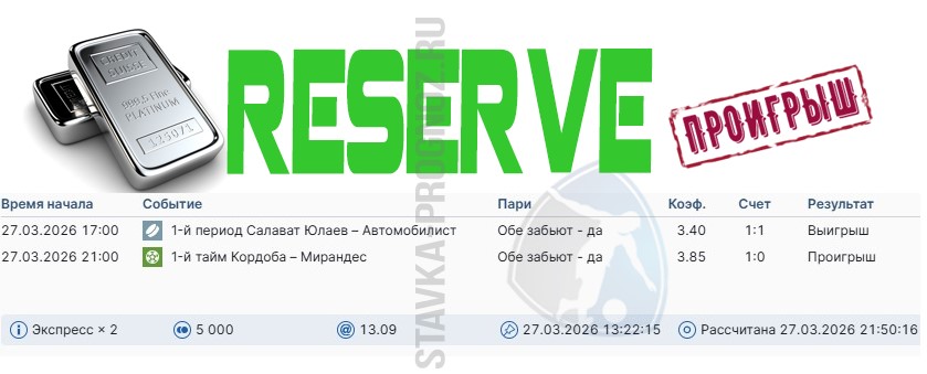 Победа reserve. Всего два события в экспрессе за КФ Х12+