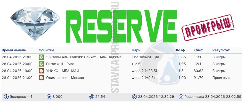 В пятницу сыграл только золотой прогноз - reserve-карточка на КФ Х7+