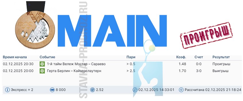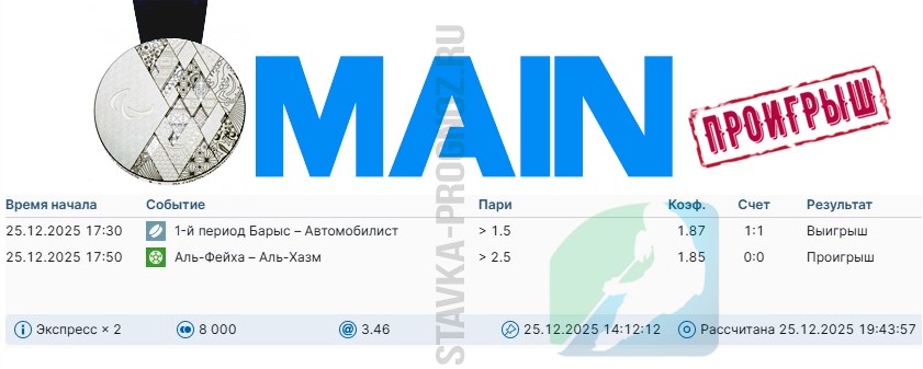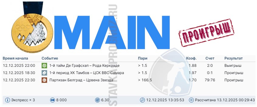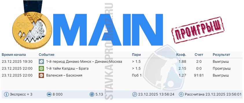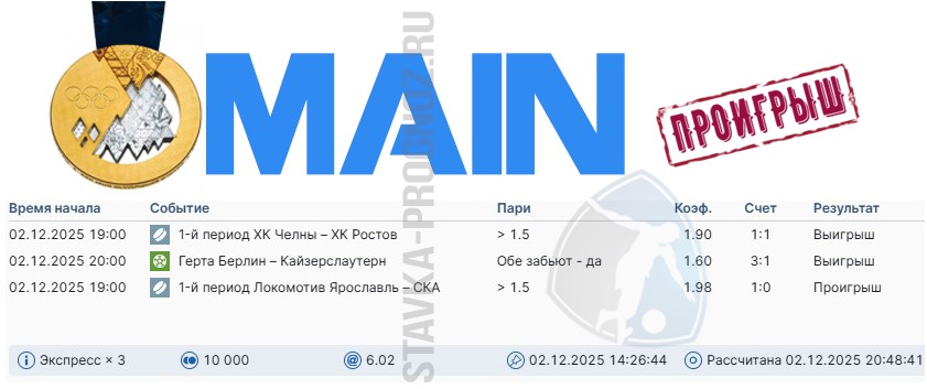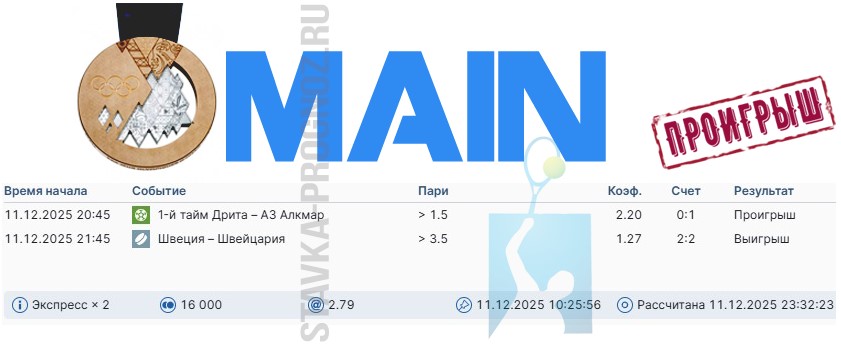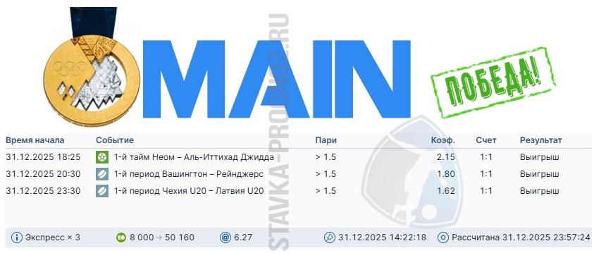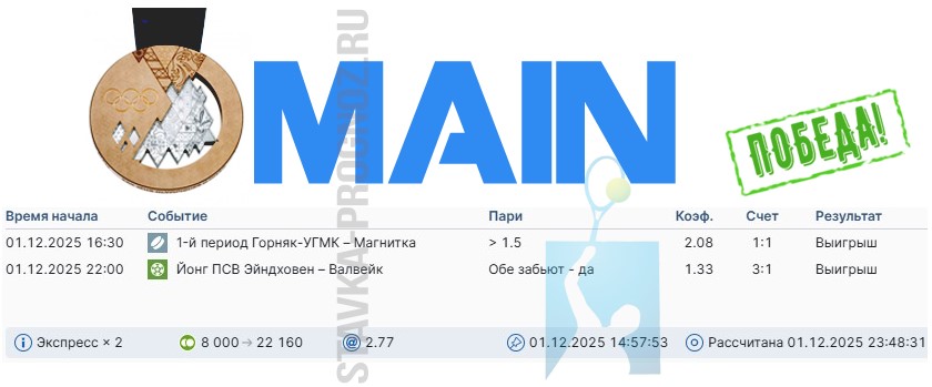 Сегодня играем три прогноза: бронзу, серебро и золото.