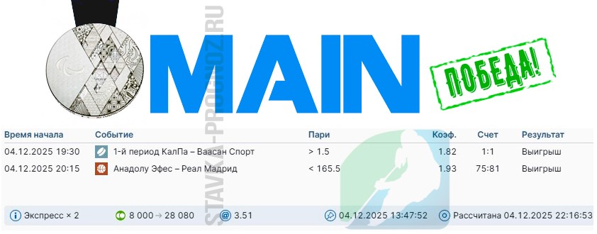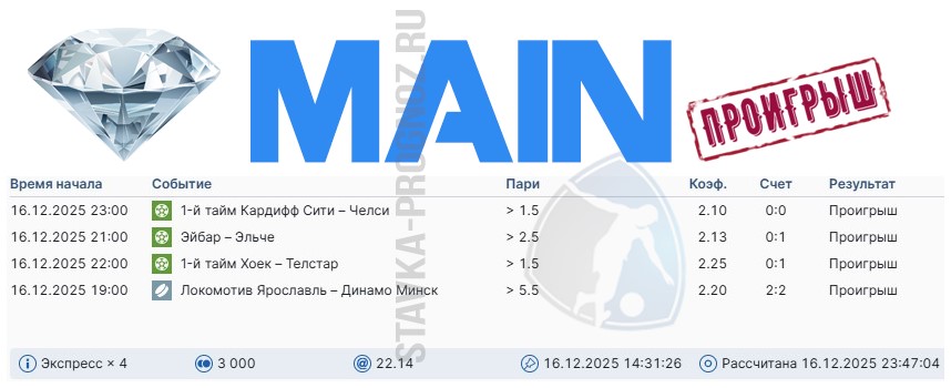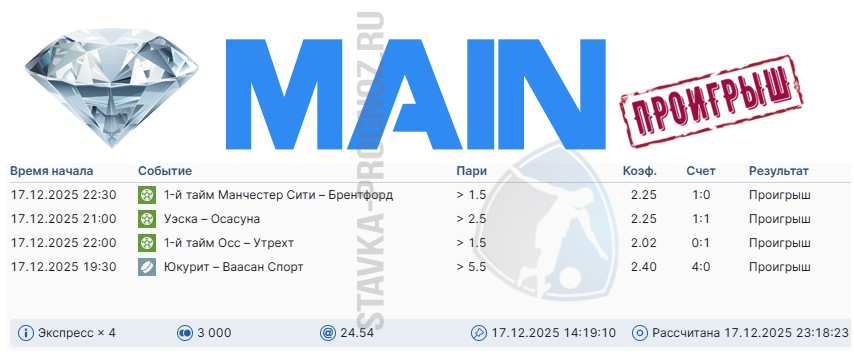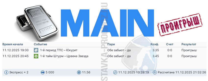 В среду играем все основные прогнозы.