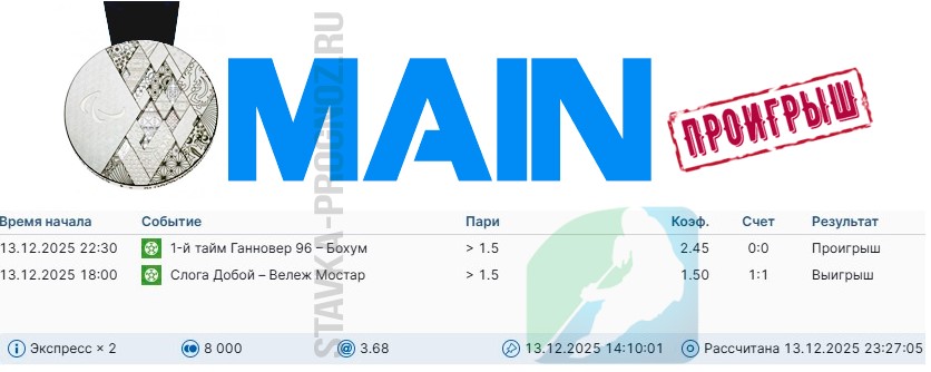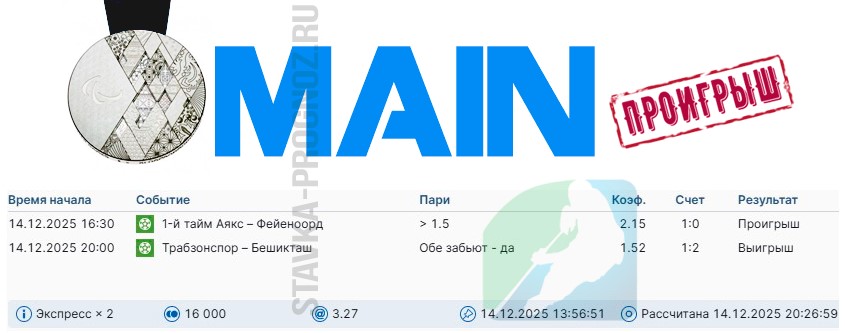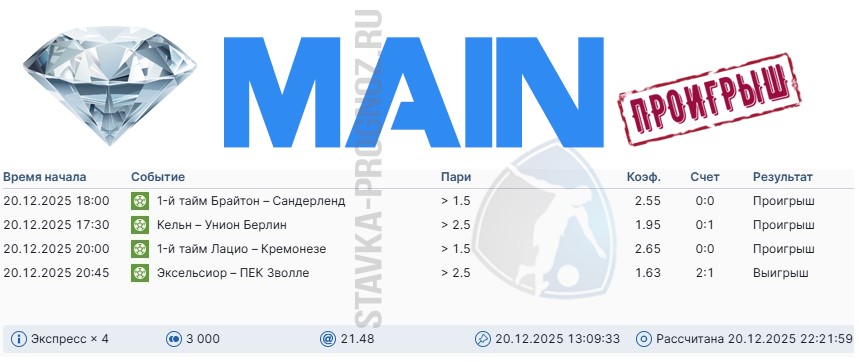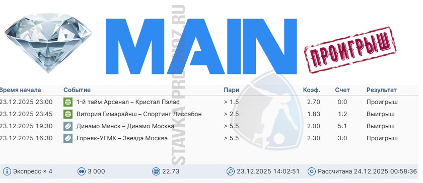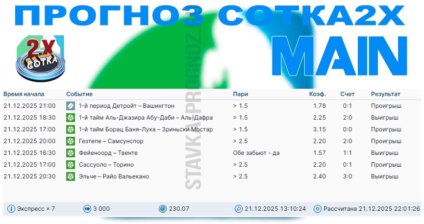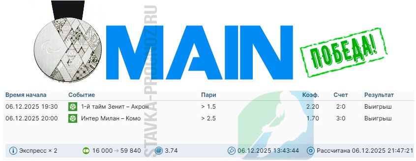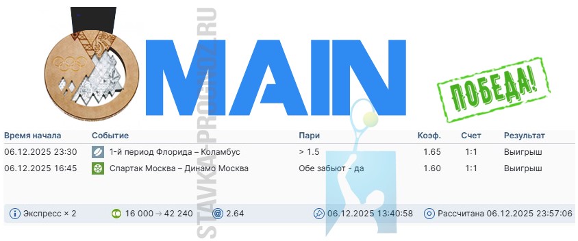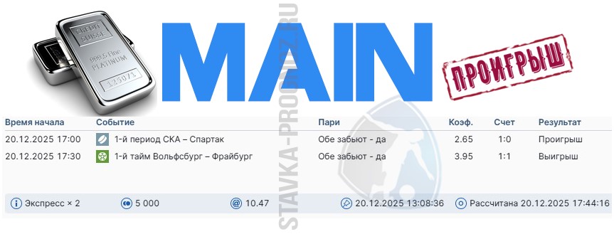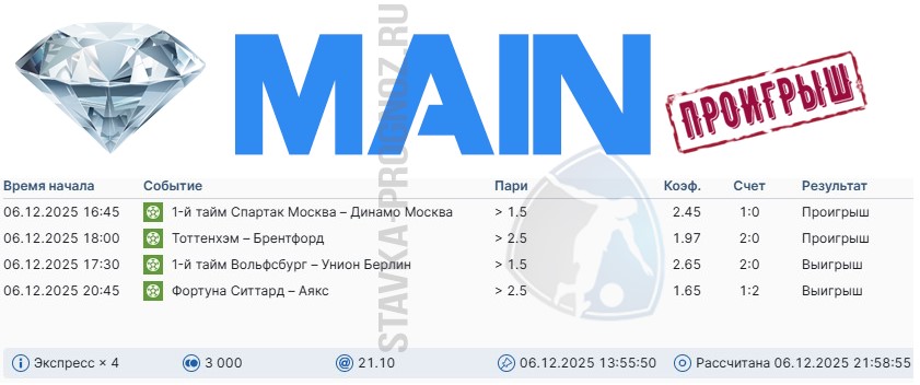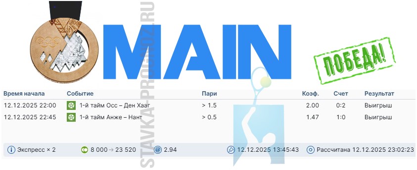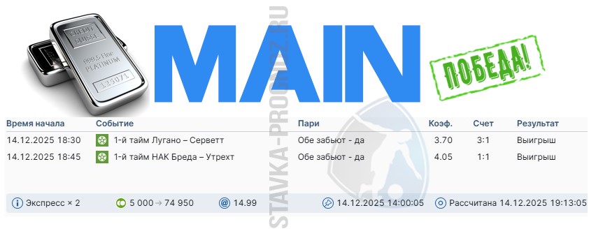 Как сегодня отлично выстрел золотой прогноз на победный дубль в КФ Х6+