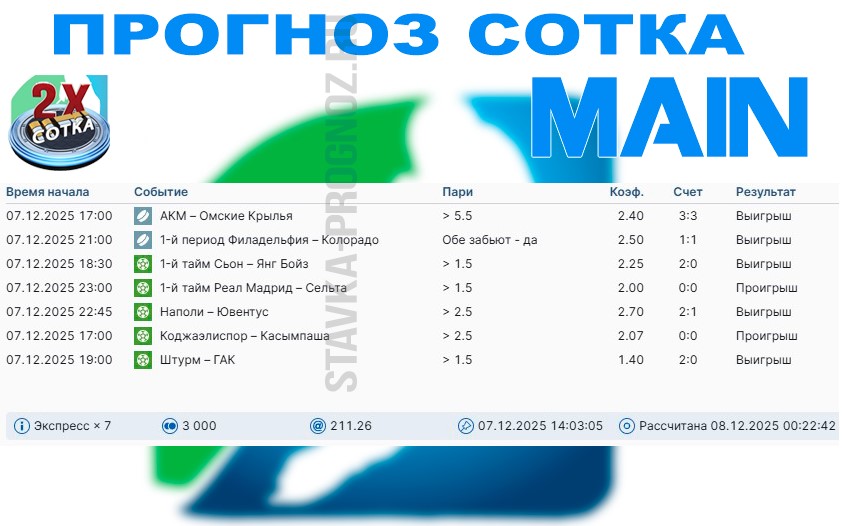 Сервис прогнозов на спорт STAVKA-PROGNOZ.RU