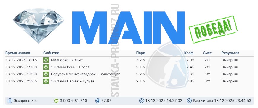 Берём сразу отличную победу в бриллианте! Победа main. 4 события в экспрессе на тоталах.