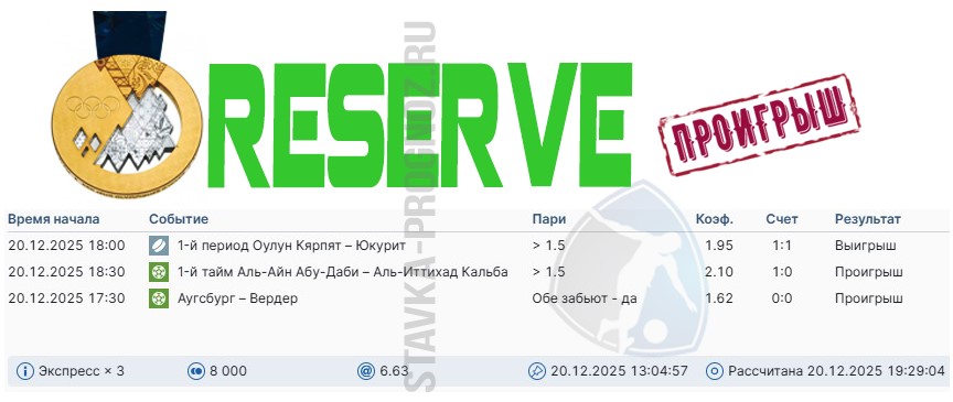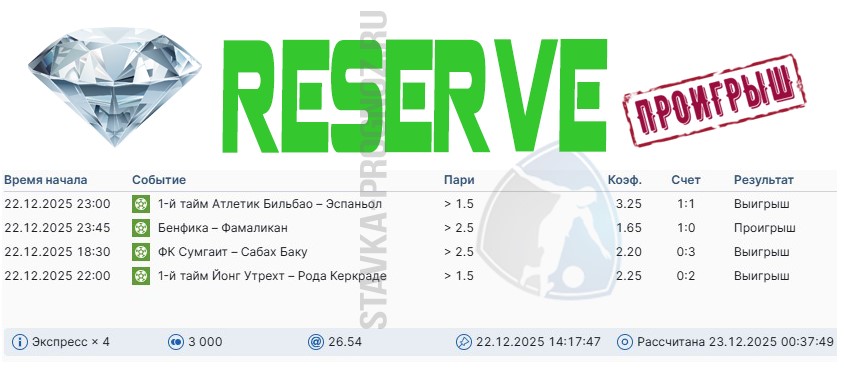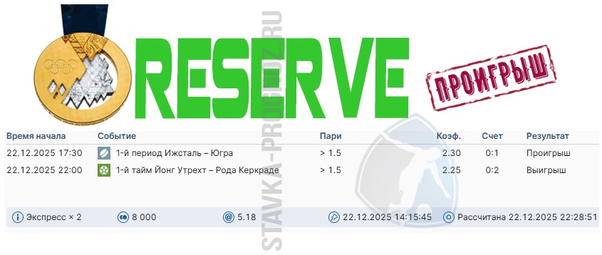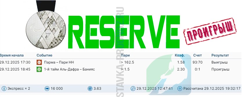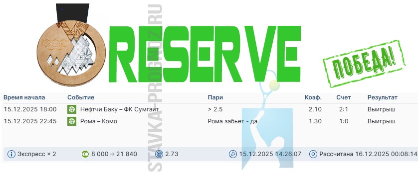 Играли на удвоении. Победа reserve.