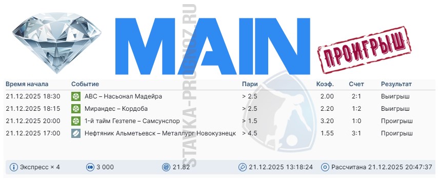 Единственный прогноз, который порадовал нас сегодня победой. Сыграла main-карточка.