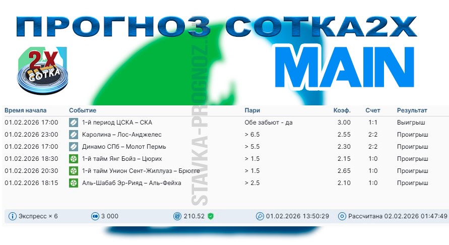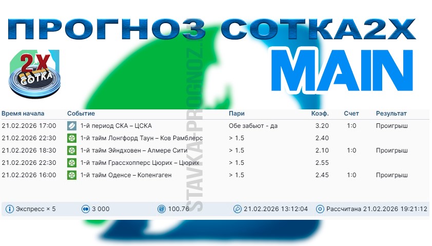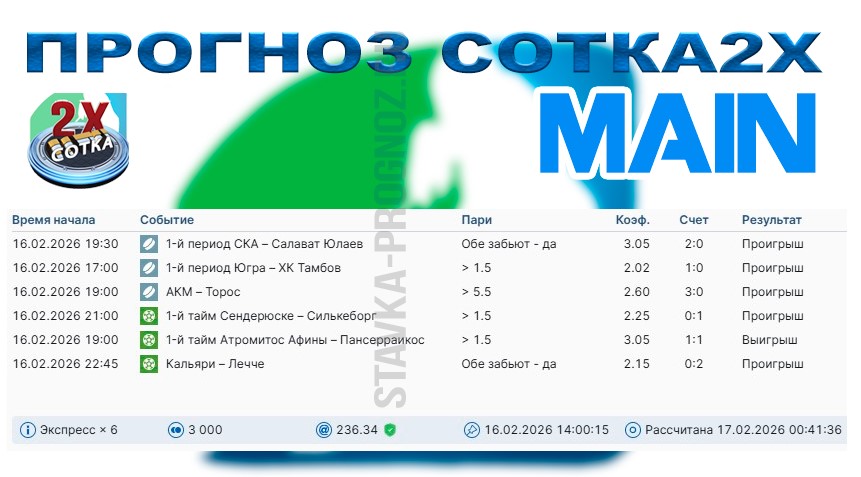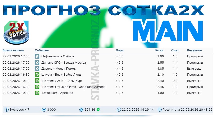 Воскресный прогноз СОТКА2Х!