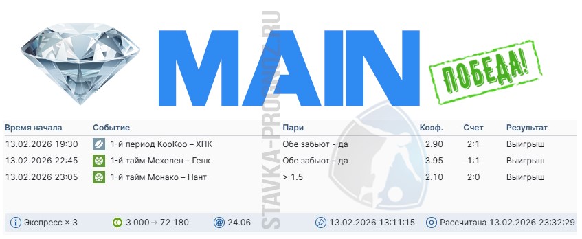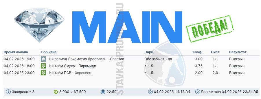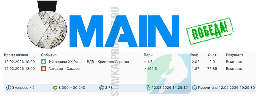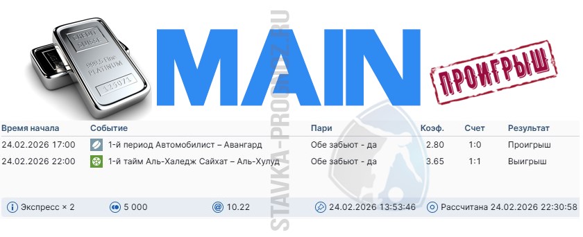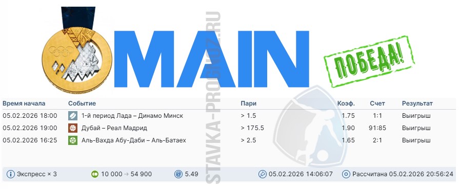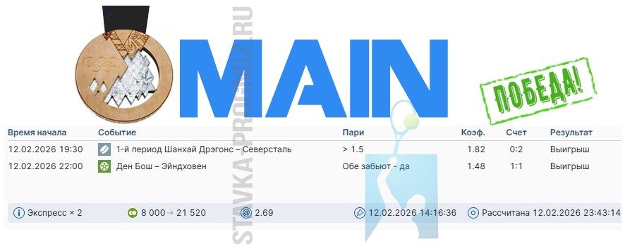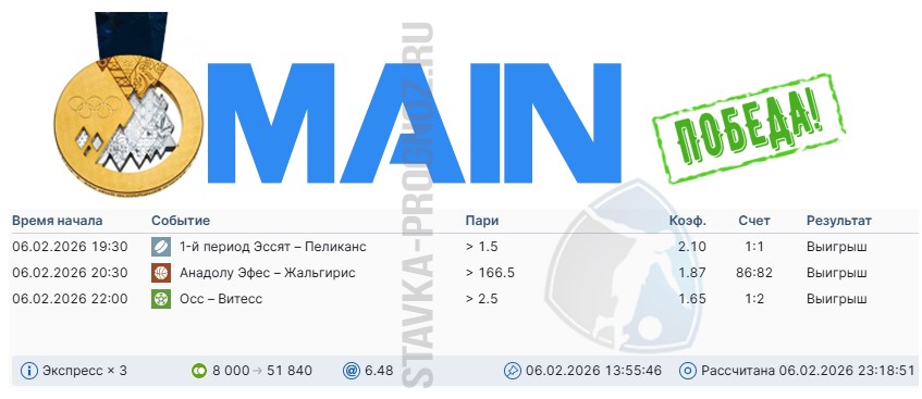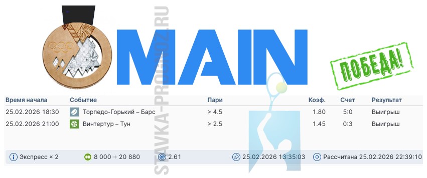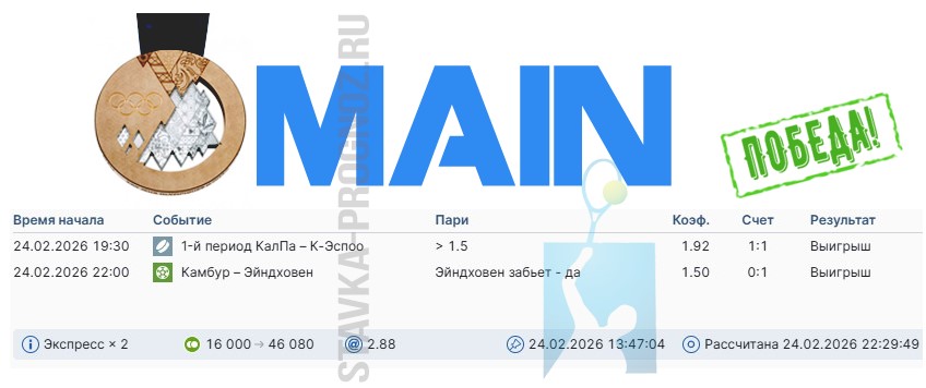 Победа main-карточки. Экспресс на исходах.