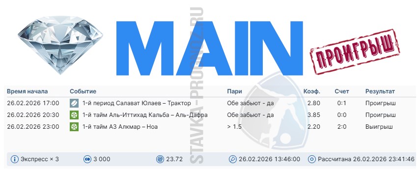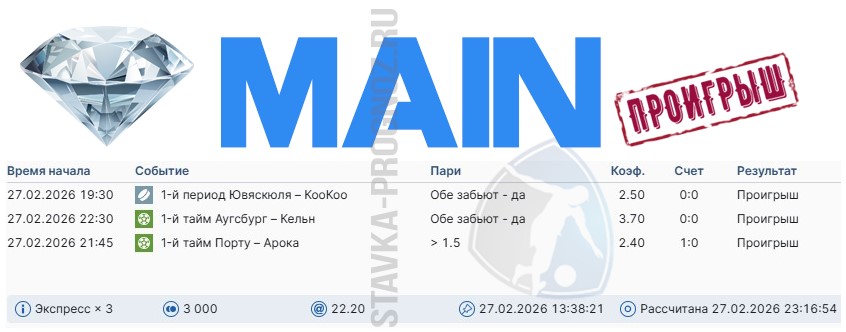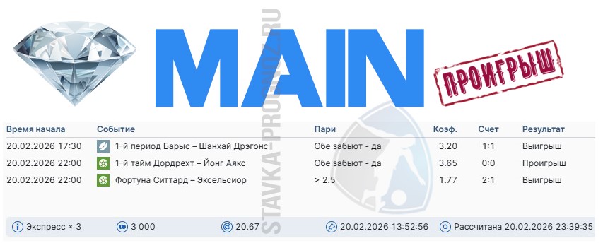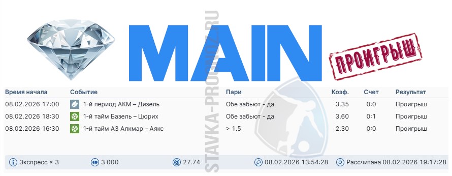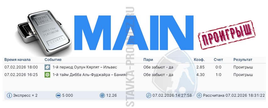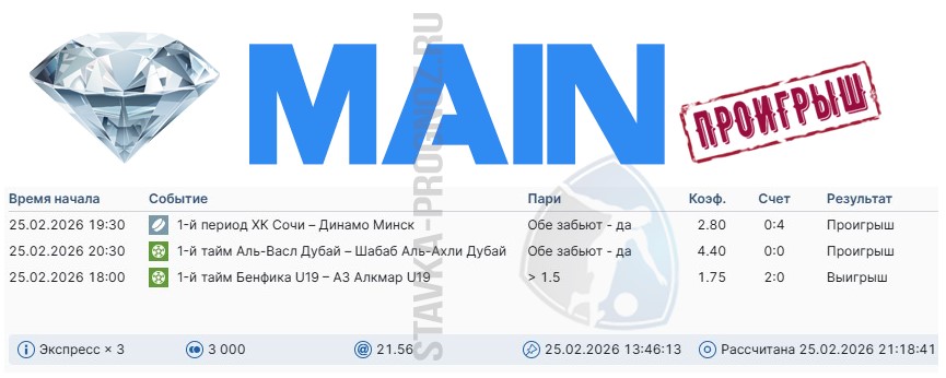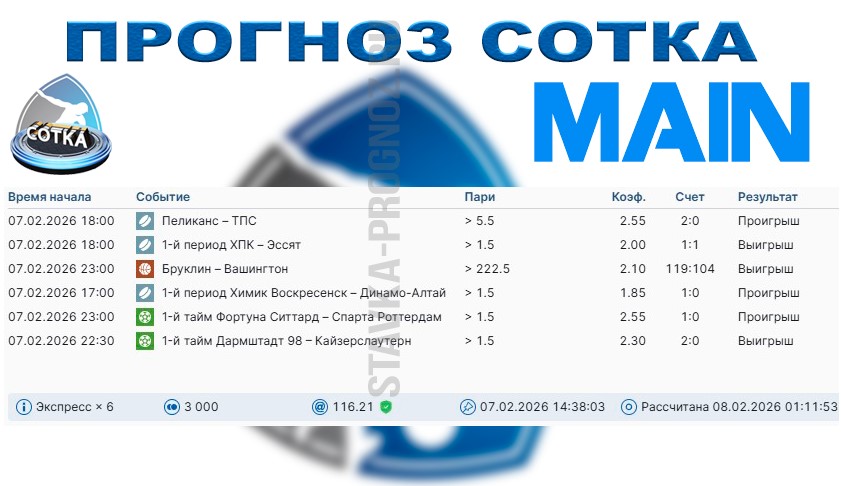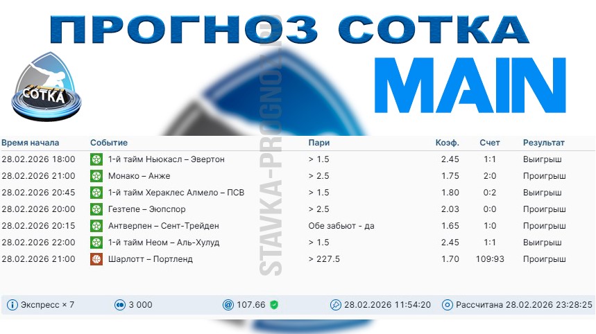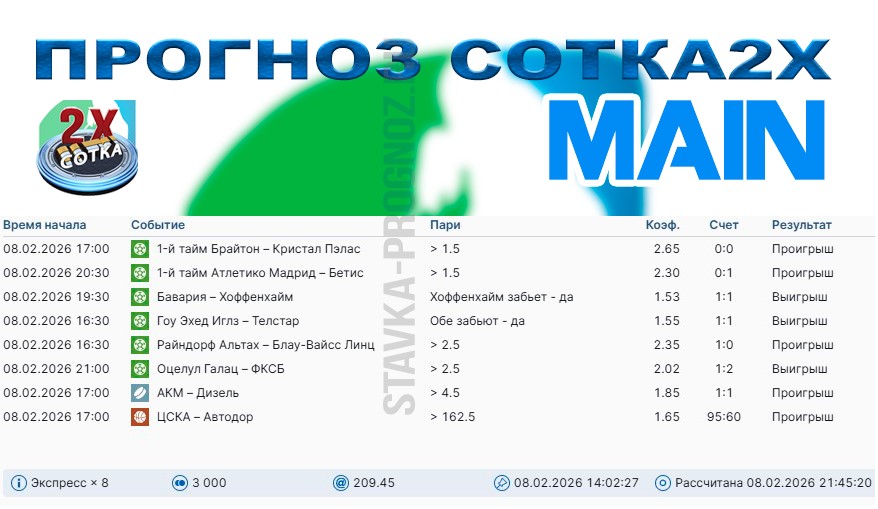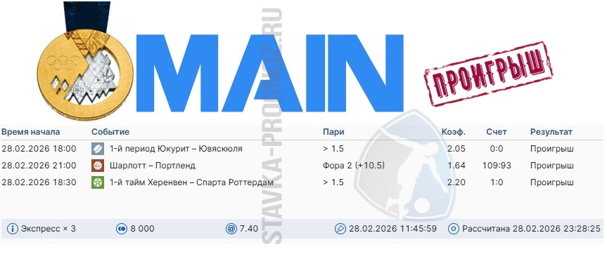 3 из 7. Проигрыш. Следующие прогнозы СОТКА играем 28 февраля и 1 марта.