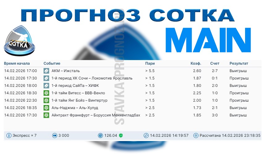 Играем все основные прогнозы + субботний экспресс СОТКА.