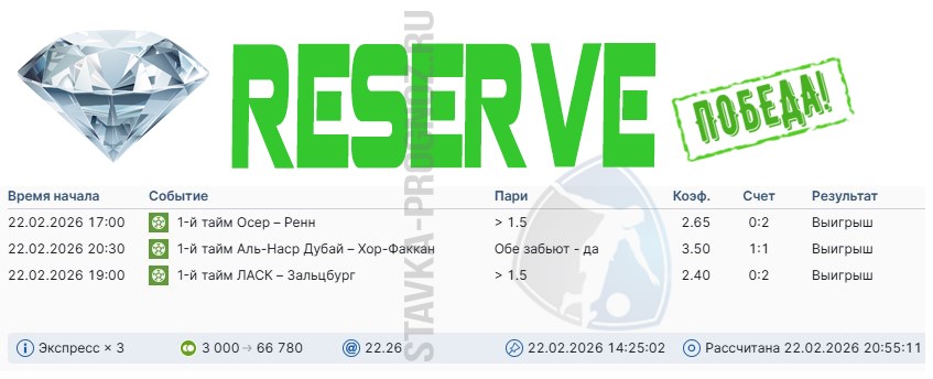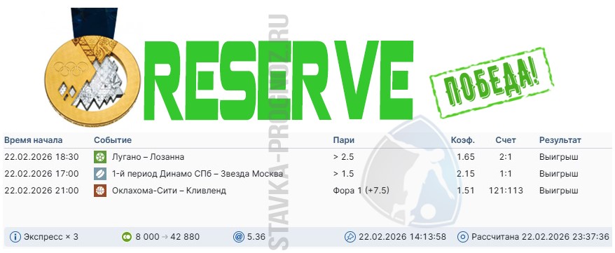 Победа reserve-карточки на рабочей ставке. Три события в экспрессе.
