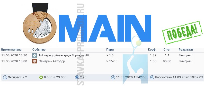 Сегодня играем все основные прогнозы + воскресный экспресс СОТКА2Х.