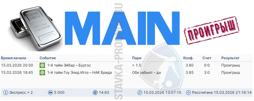 Аут. Вновь компоновка подвела. Разошлись экспрессы. В ближайшие дни нет футбола для платины. Поэтому прогноз в марте закрыт. Продолжим 1 апреля.