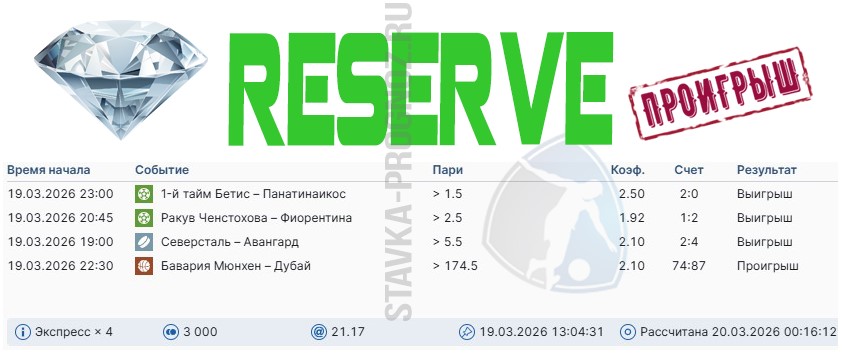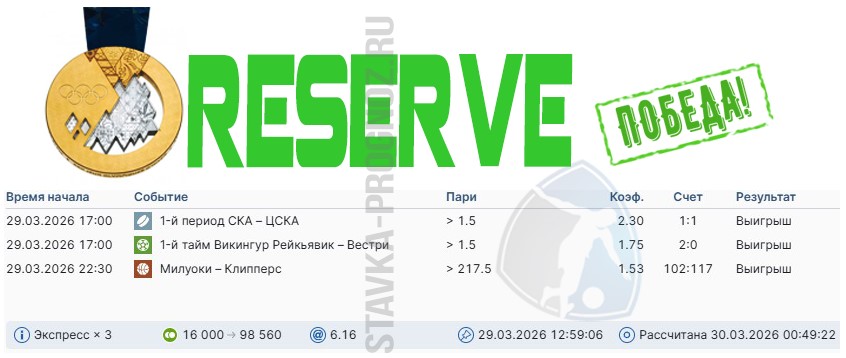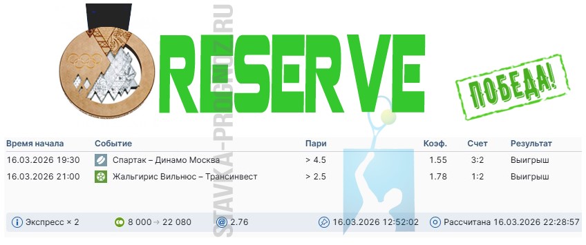 Победа reserve. Всего два события в экспрессе за КФ Х12+