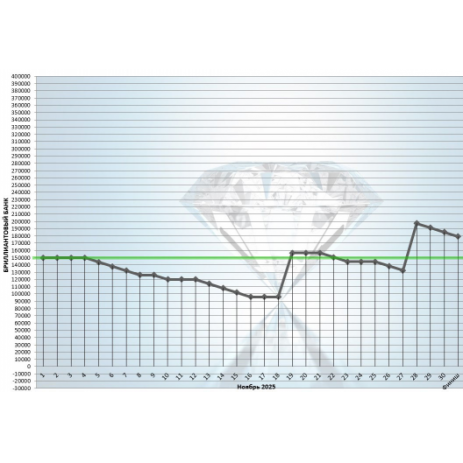 Играли на удвоении. Терпим поражение. Не удалось добрать банк. Возвращаемся на рабочую ставку.