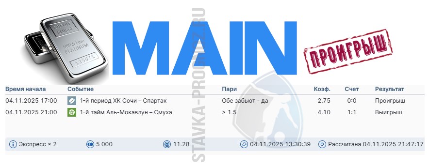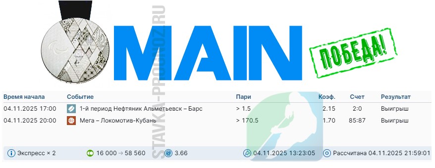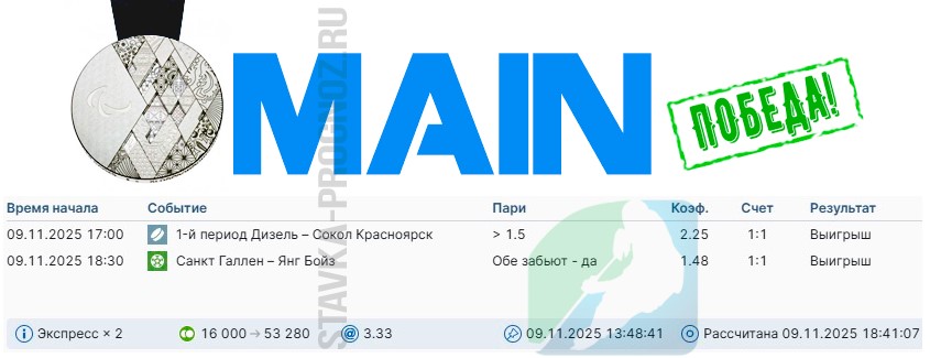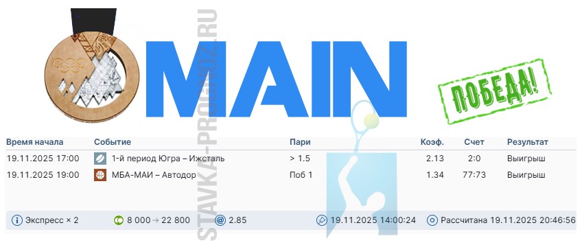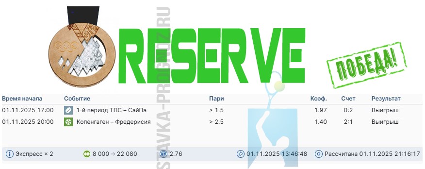 В ноябре играем все прогнозы на спорт. Продолжаем ставить прогнозы на футбол, хоккей, баскетбол. Что точно не играем в ноябре, так это волейбол и теннис.