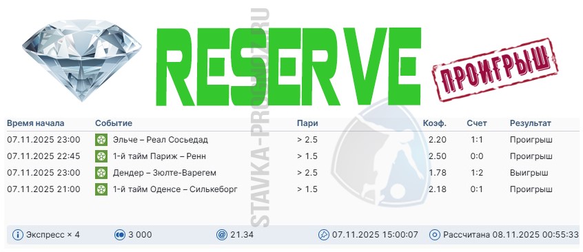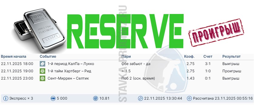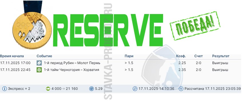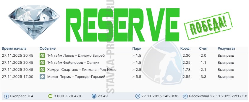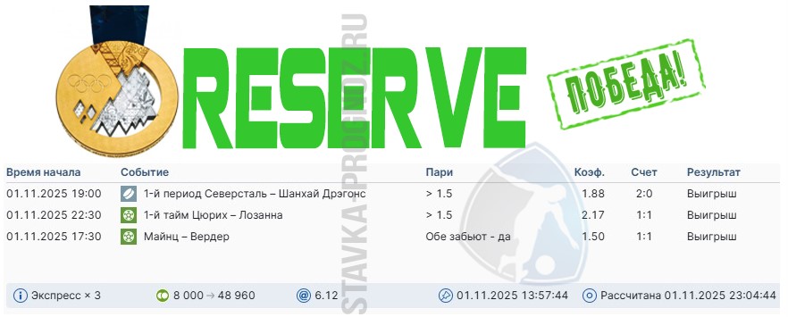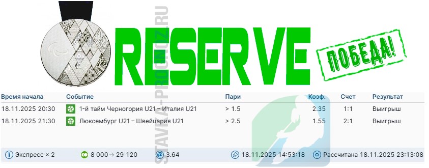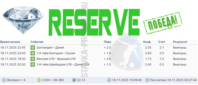 Взяли победу в reserve-карточке. Сыграла система 4/5 в одном варианте.