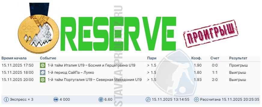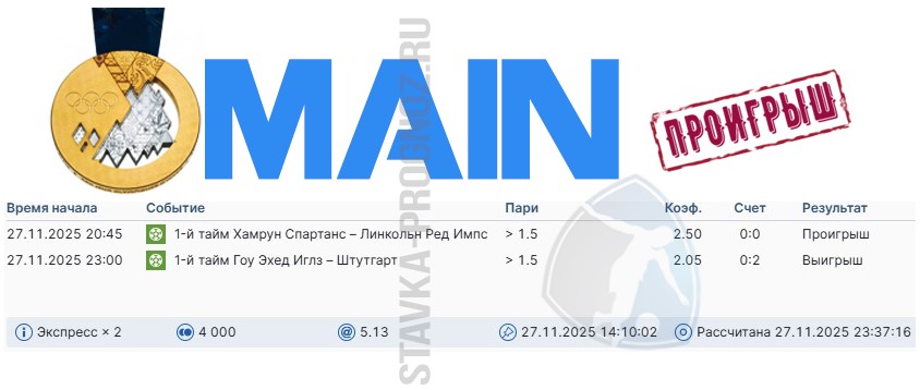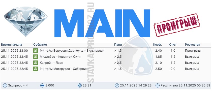 Проигрыш. Не сыграли тоталы на матч 2,5. Не хватило по мячу.