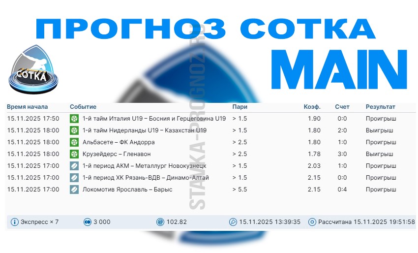 Сегодня играем все прогнозы. СОТКУ не играем!