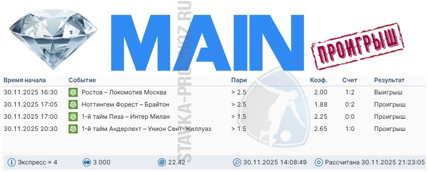Отчеты за ноябрь 2025 года по всем платным прогнозам на спорт.