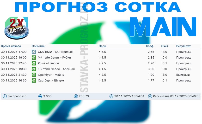 В воскресенье играем все основные прогнозы + воскресный экспресс СОТКА2Х.