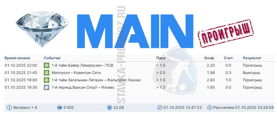 В октябре играем все прогнозы. После невезучего и минусового сентября ждём отличных результатов в октябре!