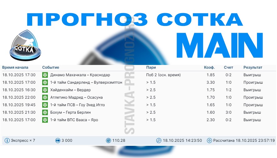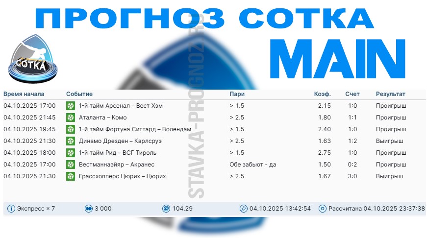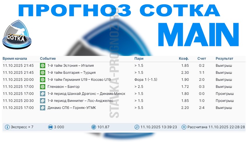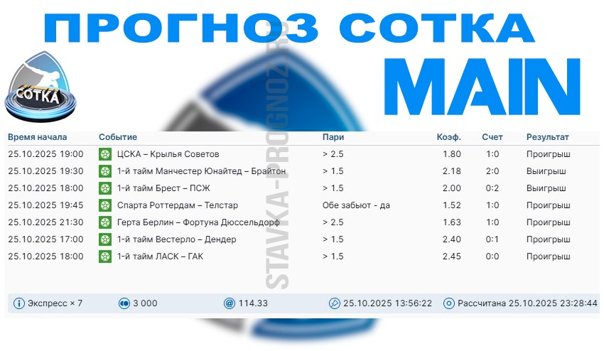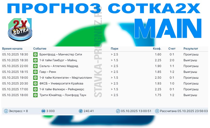 Следующие прогнозы СОТКА и СОТКА2Х играем 11 и 12 октября соответственно.