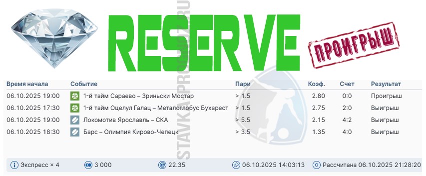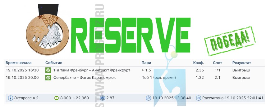 Второй заход на добор банка. Отличная победа в reserve-карточке на кф под Х6!