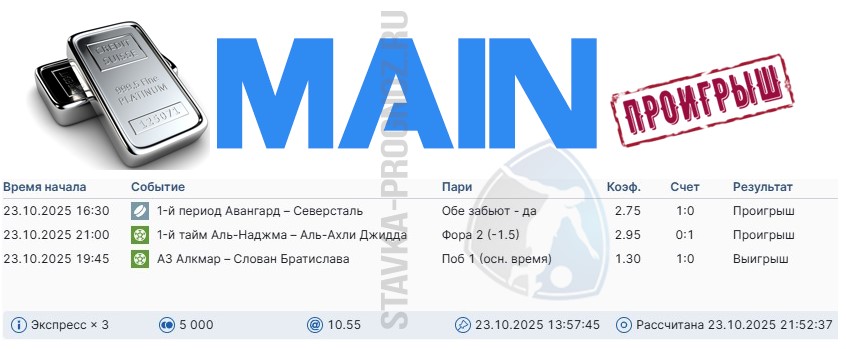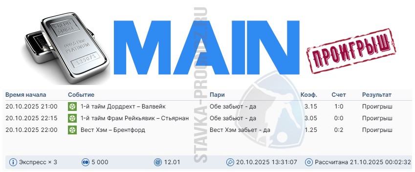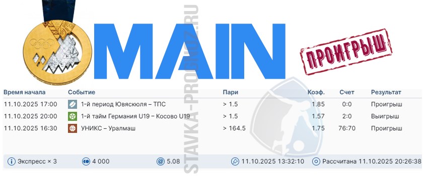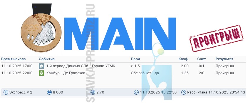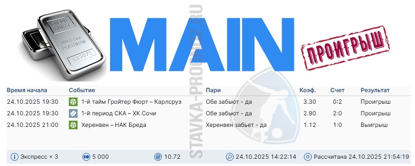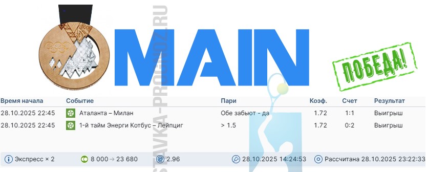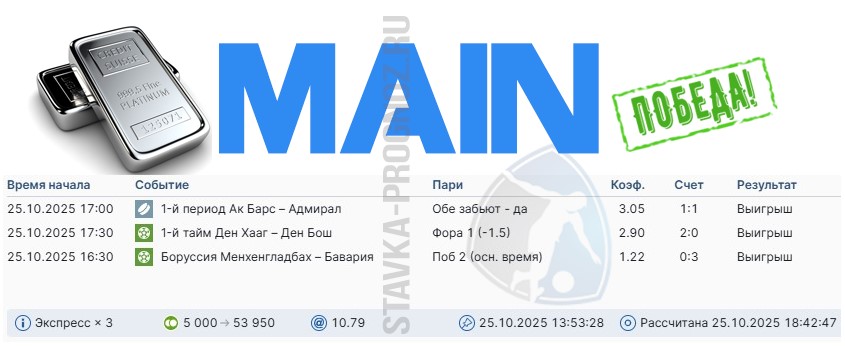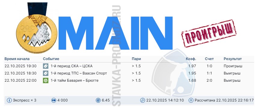 Сегодня играем 3 прогноза: бронзу, серебро и платину.