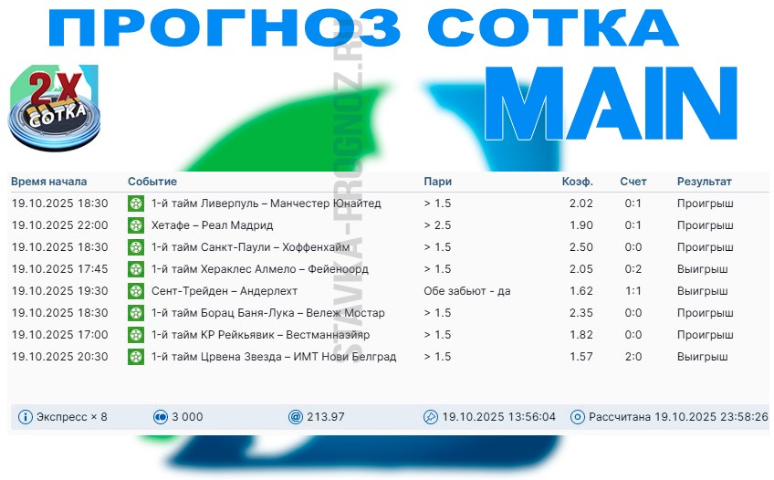 Сегодня играем все прогнозы + воскресный экспресс СОТКА2Х.