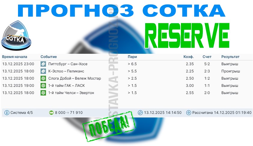 СОТКА - Марафон. ПОБЕДА-RESERVE. СИСТЕМА 6/7 03.12.2020 (см. раздел отчеты декабрь)