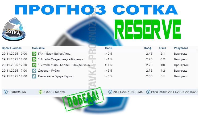 СОТКА. ПОБЕДА-RESERVE. СИСТЕМА 4/5 29.11.2014 (см. раздел отчеты ноябрь)